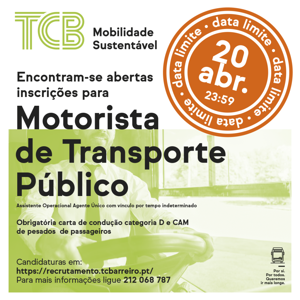 Informa-se que o período para apresentação de candidaturas à função de Motorista decorre até ao próximo dia 20 de abril.